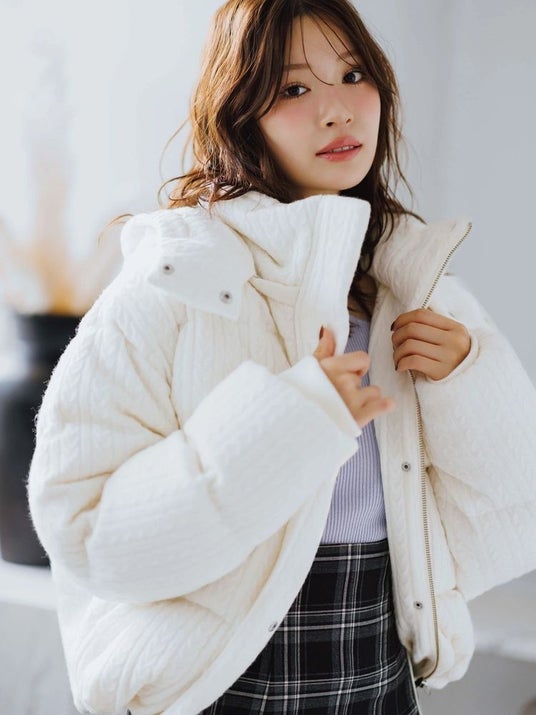 スタイリングに合わせてフードが取り外せる、2WAY仕様がポイントのショートダウン。