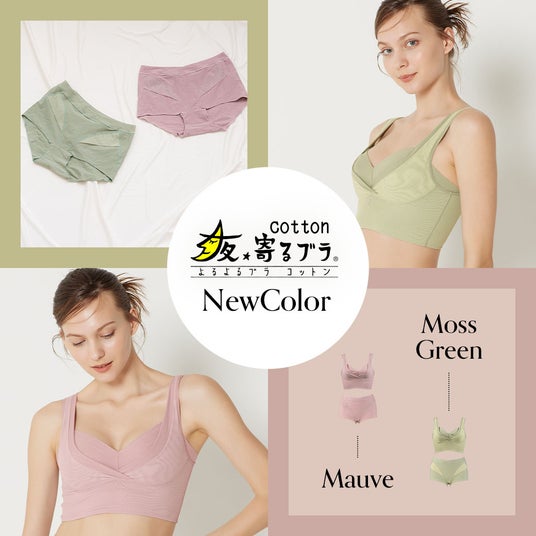 大好評の「夜寄るブラ コットン」から、待望の新色・モスグリーンとモーブの2色が登場しました。