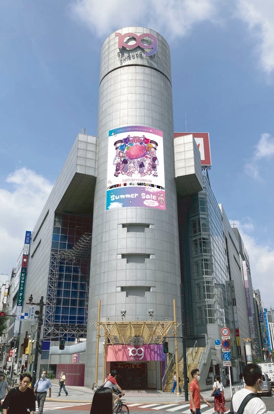 渋谷の街の象徴ともいえるSHIBUYA109渋谷店のビル外壁(通称:シリンダー)には、本キャンペーンのために描き下ろされた限定コラボレーションビジュアルを期間限定で掲出。各施設の館内外には、本キャンペーンビジュアルを掲出いたします。