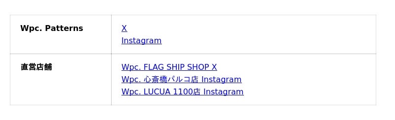 【Wpc. Patterns ブランドサイト】https://wpc-patterns.jp/