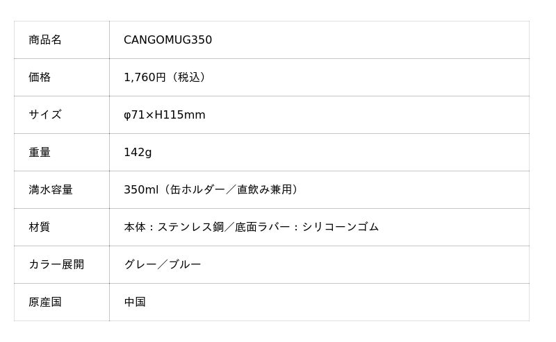 缶飲料をそのまま保冷できる『CANGOMUG 350』を2026年2月に発売しました。