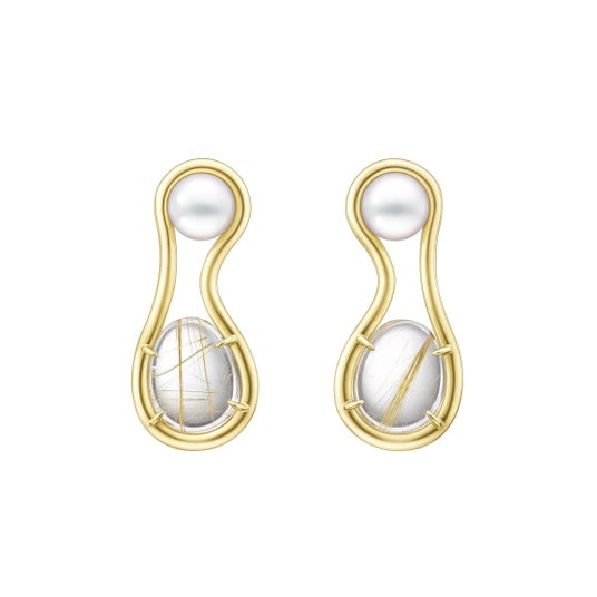 フルイド イヤリング[18K イエローゴールド、あこや真珠、ルチルクォーツ]¥1,012,000