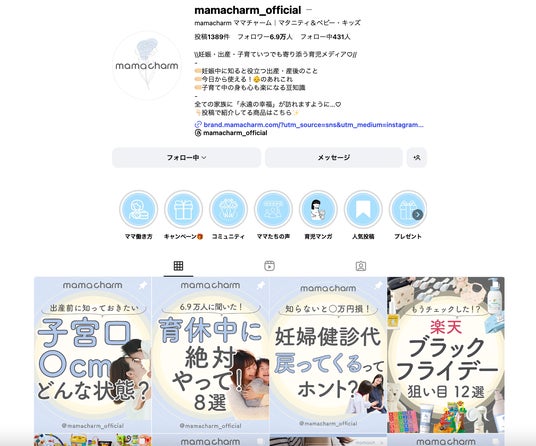 ママチャームの商品情報だけでなく、妊娠中に知ると役立つ出産・産後のことや、今日から使えるベビーのあれこれ、子育て中の身も心も楽になる豆知識など様々な情報を発信しています。