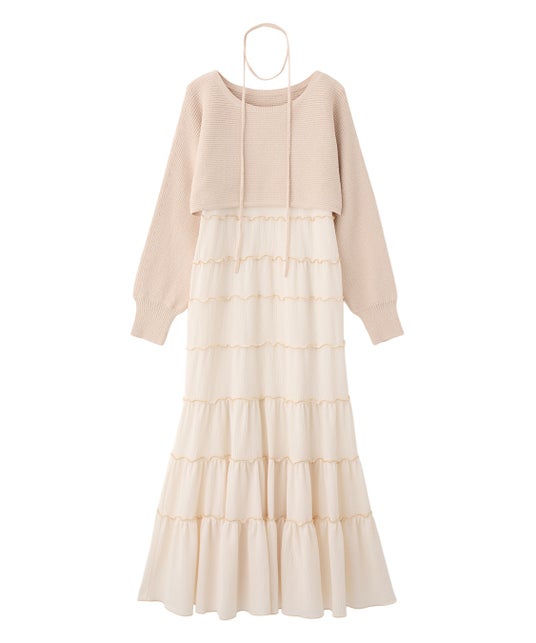 ニットとキャミワンピースがセットになった、着回し力抜群のワンピース。合わせ次第で、通年ご着用いただけます。