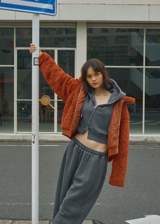 ボアショートブルゾン 22,000円(税込) ダブルジップピグメントショートパーカー 13,200円(税込) ピグメントスウェットルーズパンツ 14,300円(税込)