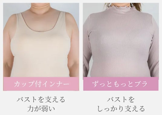 カップ付きインナーよりバストをしっかり支えてくれるため、シルエットも整います。