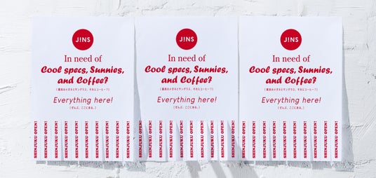 オープンを記念して、10,000円分のメガネ券などが入ったお得な「THE SHINJUKU SET」を8,800円で販売するほか、3階「ONCA COFFEE(オンカ コーヒー)新宿店」でお得にドリンク・フード・物販を楽しめるクーポンチケット、限定タンブラー、コンタクトレンズのクーポンの3点がセットになった先着特典など、JINSの全てが揃った本店舗ならではのキャンペーンや特典をご用意します。