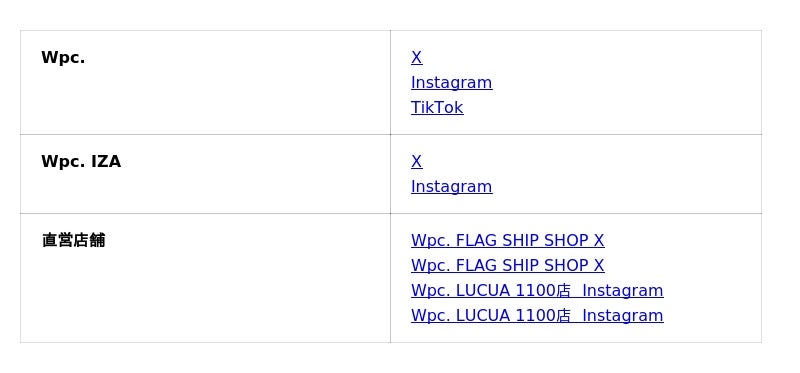展開ブランド :Wpc. / W by Wpc. / Wpc. IZA / SiNCA by Wpc. / ONDOO by Wpc.