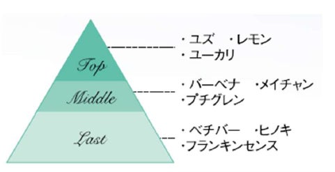 森林浴効果として知られる成分「フィトンチッド」を含む「ヒノキ」や「フランキンセンス」と「ユズ」をブレンド。それぞれのお手入れに