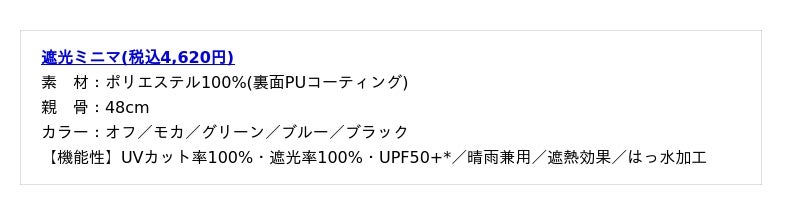 ※記載の結果は生地の状態での測定値であり、傘本体の性能を示す数値ではございません。また、生地に施された刺繍・縫製などのUV加工生地以外の部分もこの限りではございません。