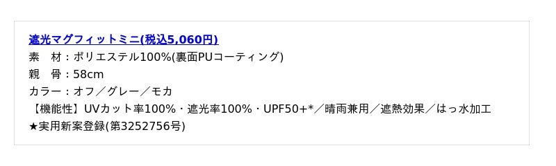 *JIS L 1925の規定に準じて生地のUVカット率100%の測定値が出た生地をUVカット率100%生地としております。JIS L 1055 A法にて遮光率100%の測定値が出た生地を遮光率100%生地としております。JIS L 1925の規定に準じて生地のUPF値を測定しています。