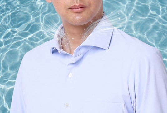 気象庁が発表した夏の見通し※1によると、今夏の気温は全国的に平年よりも高い見込みとなっていることに加え、改正気候変動適応法の施行などもあり、暑さ対策への関心も高まってきています。スーツスクエアではこれまで接触冷感や吸水速乾などのビジネスシャツを発売していますが、年々暑くなる夏に向けて、より涼しさや機能性を求める声もお客さまから上がっています。そこで今回、夏用のスポーツウエアやインナーなどで使用されてきた、水分に反応して高い冷感効果を発揮する素材「ICE BLAST(R) THIRD(アイスブラストサード)」を、業界で初めてビジネスシャツに採用※2。汗を活用した、新感覚の「冷たいシャツ」を発売します。