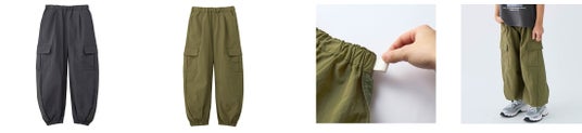 Tシャツは、フォトプリントのロゴにちらっとカラーを効かせた大人っぽいデザインです。身生地には、ざっくりとした風合いが魅力の綿100%天竺を使用し、一枚でおしゃれに決まります。大人用サイズは、二の腕やお尻を自然に隠す計算された「体型カバー」設計で、トレンド感と着心地の良さを両立させました。パンツはお揃いのカーゴデザインで、キッズは外遊びなども想定して撥水素材、ママは「キレイ見え」するストレッチ素材と、ニーズに合わせて生地を使い分けています。キッズはユニセックス仕様なので、子どもの性別を問わず、トレンドと実用性を両立した「大人が着たい親子リンクコーデ」を叶えることができます。