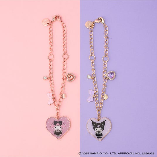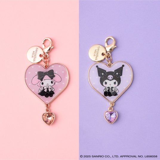 取り外し可能なハート型のポーチには、黒フェミコーデの「マイメロディ」と「クロミ」のアートをプリント。