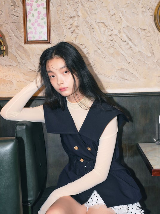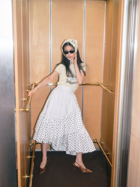 甘いドットのタイツを履いて、ブレザーで少しだけ強がって。