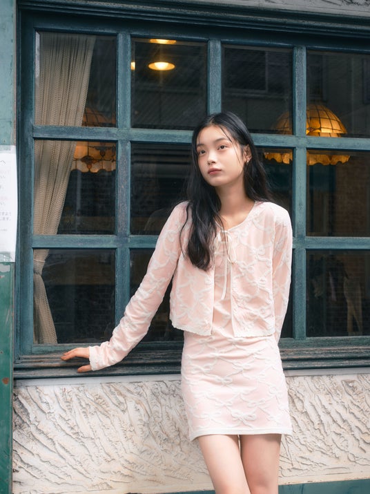リボンジャガードカーディガン