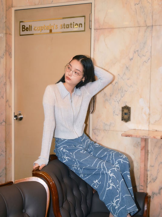 パールプリントデニムパンツ