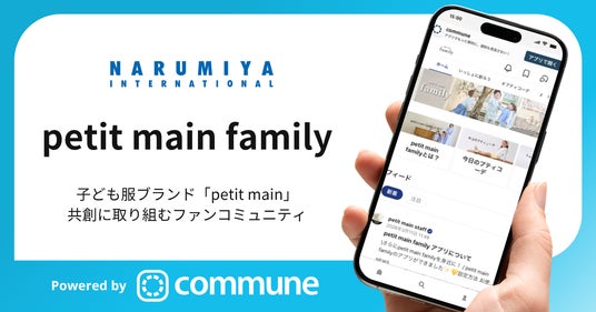 相互交流で信頼を育む「Commune(コミューン)」を提供するコミューン株式会社は、株式会社ナルミヤ・インターナショナルが展開する子ども服ブランド「petit main(プティマイン)」の公式ファンコミュニティ「petit main family」にCommuneが採用されたことをお知らせいたします。