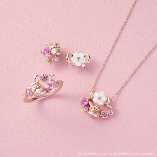 「マイメロディ」の50周年、「クロミ」の20周年アニバーサリーイヤーをお祝いして、華やかで可愛らしい世界観をネックレス、リング、ピアスに表現。