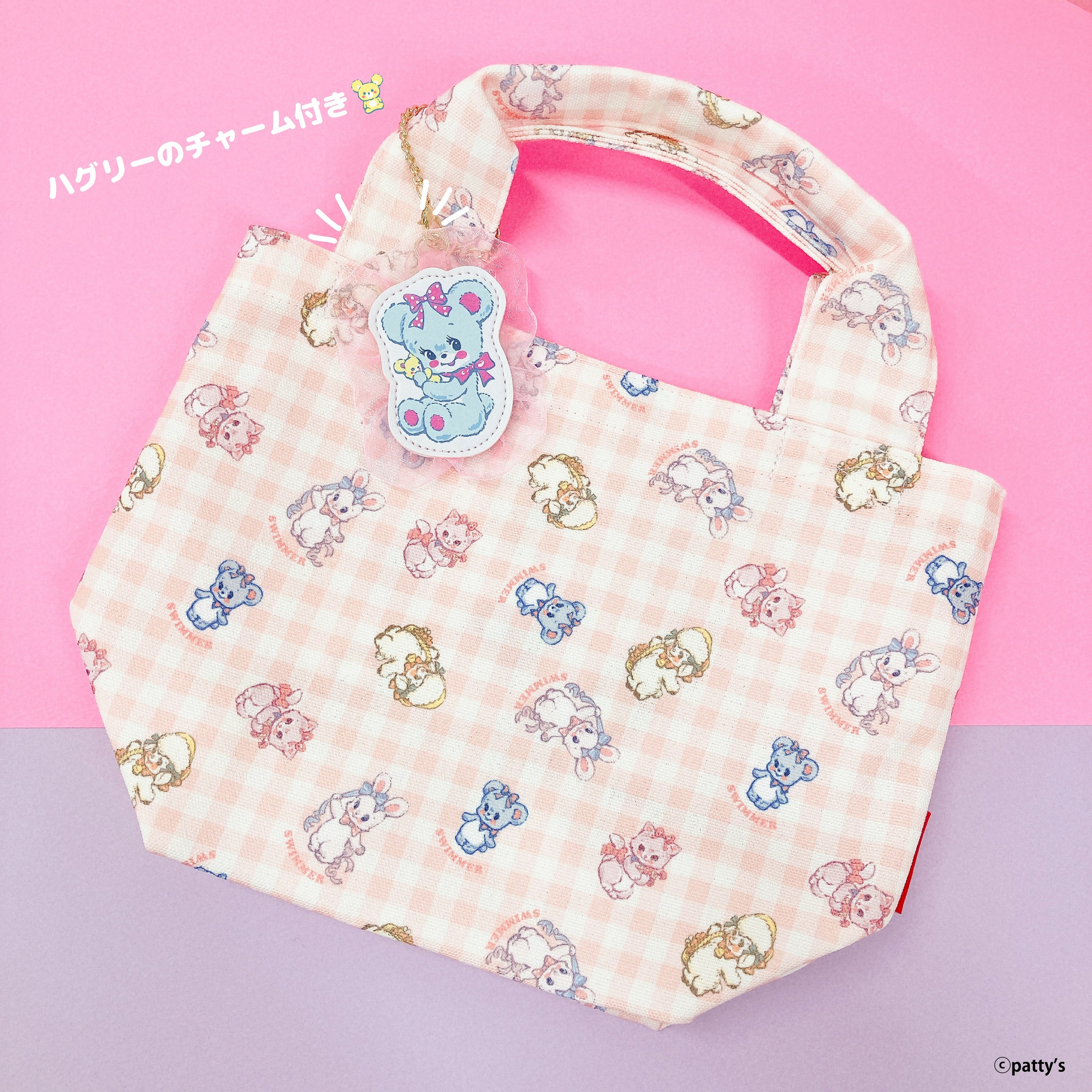 ハグリーのチャームが目を引く総柄のミニトートバッグ☆ポリエステルキャンバスという丈夫な素材でできているのも高ポイント!