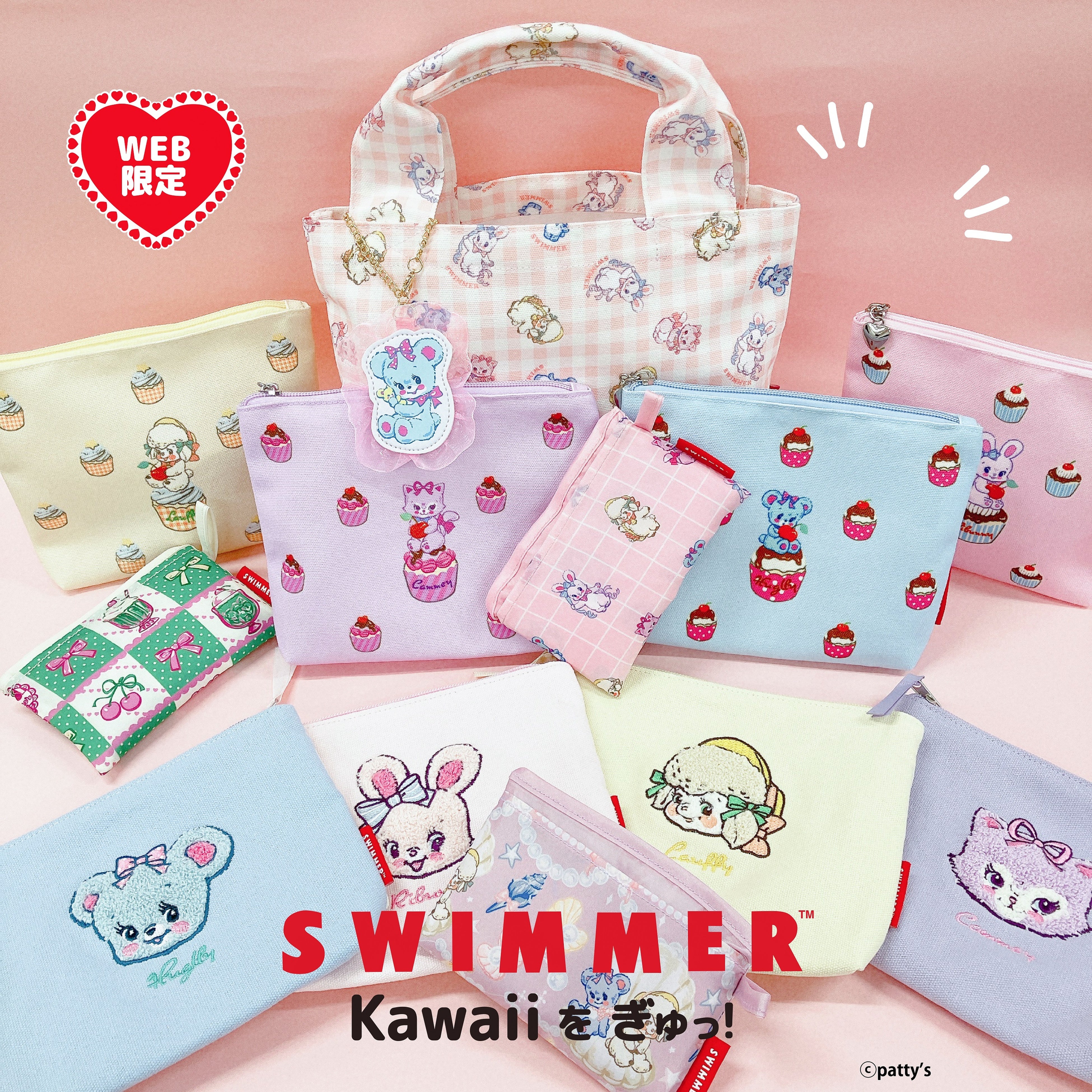 「SWIMMER」(スイマー)は衣料、ファッション小物、バッグ、ポーチ、財布、インテリア、文具などの商品を展開する雑貨ブランドです。動物やスイーツなどをモチーフにしたデザインが特徴となっており、デザインの可愛らしさから、幅広い年齢層のお客様に支持され1987年から約30年にわたり人気を博しました。2018年の展開終了後、新運営会社の【株式会社パティズ】にて2020年に復活。現在まで、当時のファンだけではなく新しいファン層からも支持されるブランドとして注目を浴びています。