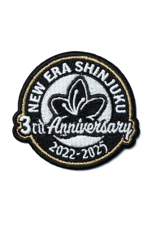 の糸で新宿の街の華やかなイメージを表現。ストア名や「3rd Anniversary」のテキスト、年号などを