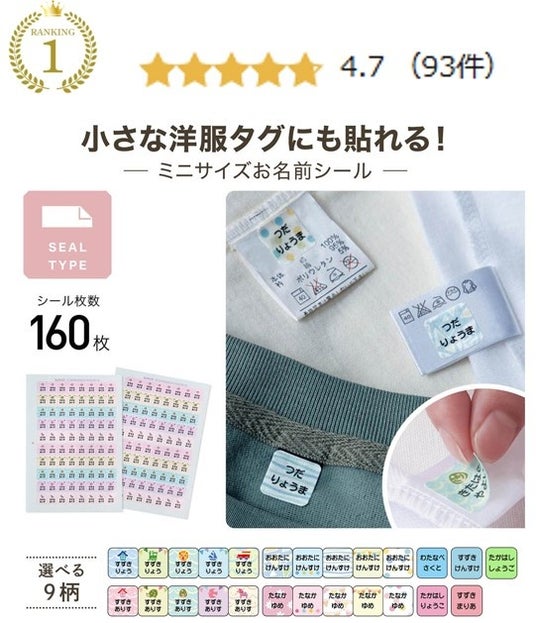 コットンお名前シール 洋服タグ用 ミニサイズ