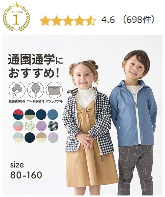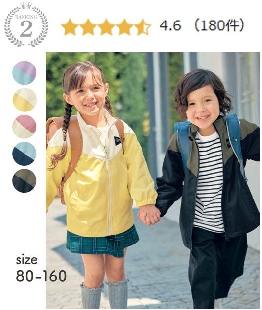活発に走り回って遊ぶ子は、冬でも暑くなって脱ぎ着をよくするので、軽くて子どもが着やすい・風を通しにくい薄手のアウターは年中着ている子も。外遊びで汚れることも多いので洗えるのも良いですね!カラフルでお子様の好みの色も見つかりそうです♪