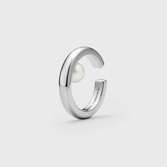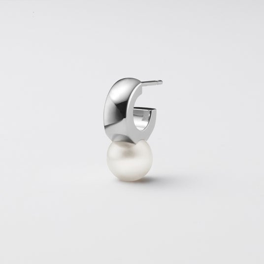 ホワイトパールの無垢な質感とモードな地金の光沢が融合したタイムレスなジュエリー。甲丸バチカンにフラットな面を施したネックレスは、エッジーな印象を与えます。ミニマルなデザインのイヤーアイテムは、日常のスタイルに溶け込むサイズ感がポイント。一つ身に着けるだけでその日のコーディネートが完成するモードなアイテム。