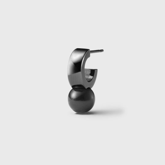 ブラックコーティングパールの深みのある佇まいと重厚感のある地金が唯一無二の存在感を放つタイムレスなジュエリー。漆黒のブラックコーティングで仕上げたオールブラックカラーは、いつものコーディネートをモードにアップグレードしてくれます。