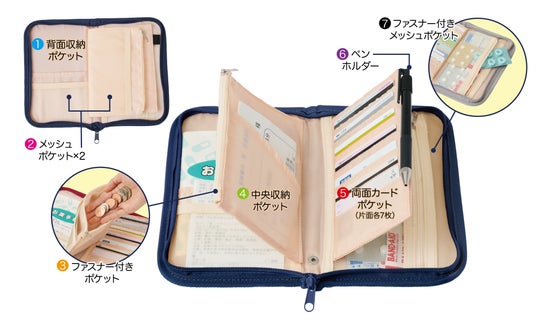 通帳やパスポートなどの貴重品も収納でき、マルチに活躍します。