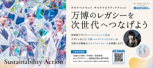 タカラベルモント株式会社(本社:大阪市中央区、代表取締役会長兼社長:吉川秀隆)は、2025年日本国際博覧会(大阪・関西万博)において、「大阪ヘルスケアパビリオン」の当社展示ブース「量子飛躍する美の世界」で使用した、世界的デザイナー・コシノジュンコ氏が手掛けた展示スタッフ用ユニフォームの寄贈先の募集を、本日10月14日(火)から特設応募サイト(https://x.gd/HVsgG)にて開始いたしました。