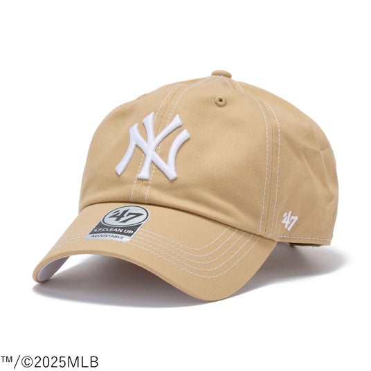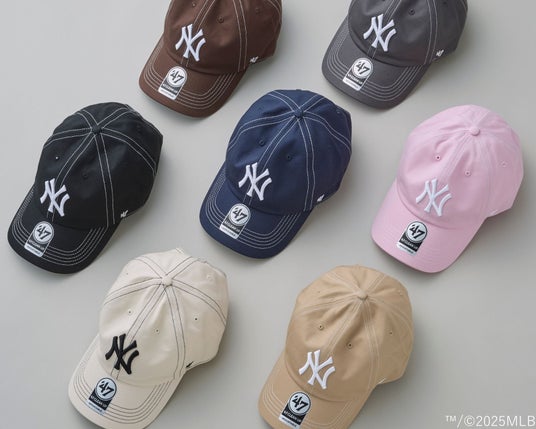 CLEAN UPは、頭の形やスタイリングを問わず誰でもかぶりやすい定番のシルエットとして広く支持されています。今回の新作では、ナチュラルホワイトにはブラックステッチを、ブラウン・ピンク・カーキ・ネイビー・ブラックにはホワイトステッチを採用することで、ボディカラーとステッチカラーの組み合わせによる自然なメリハリが生まれ、すっきりとした印象にほどよい表情を添えています。さらにフロントには、MLB(メジャーリーグ・ベースボール)の人気球団であるニューヨーク・ヤンキースのロゴをあしらい、日常のコーディネートにも取り入れやすいデザインに仕上げました。