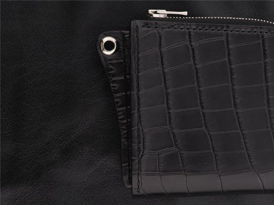 今回は通常のサドルプルアップレザーからクロコダイルレザーに変更することで、見た目の高級感と重厚感がアップ。