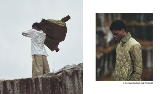 5シーズン目となる2025 FALL & WINTER COLLECTIONのシーズンテーマは"The Unknown Awaits -自由を纏い、未知の冒険へ-" を掲げ、旅を共にする機能ウェアを展開します。滑らかで上品な光沢感でベロアのような風合いを持つ防水ダウンジャケット、チューブ構造のダウンパックが交互に形成されたダウンジャケット、パッカブル機能を装備した軽量ジャケット、キルティングの凹凸感を活かしたゼブラ柄のベストなどを取り揃えています。