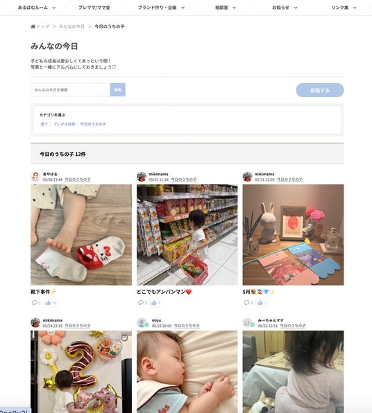 コミュニティ内のSNS機能を活用し、日々の思いや育児の様子を自由に発信。