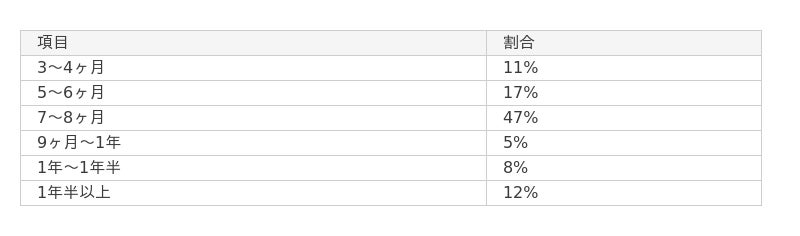 - 全体の47%の人が脱毛が終了するまでに7~8ヶ月かかったと回答