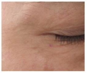 シワなどの肌悩みをもつ健康な女性64人(平均53.6歳)に、顔の左右どちらかに新RJエキスを含有したクリームを、もう一方には新RJエキスを含有しないクリーム(プラセボ)を、1日2回、12週間塗布してもらった。塗布前、塗布6・12週間後に、目尻のシワの状態や角層水分量、真皮の厚み、キメの状態を測定した。