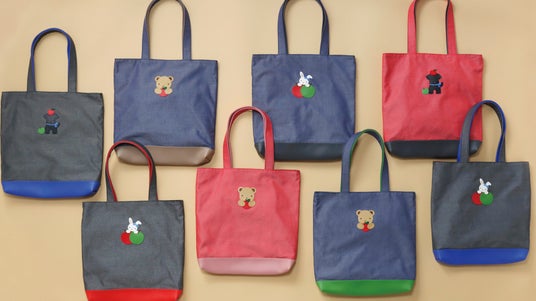 本体生地(3種類)、持ち手/底(6種類)、裏生地(3種類)、アート(3種類)から選べるカスタマイズバッグ。本体生地にはファミリアオリジナルの平デニム生地を使用。モチーフには合成皮革を使用
