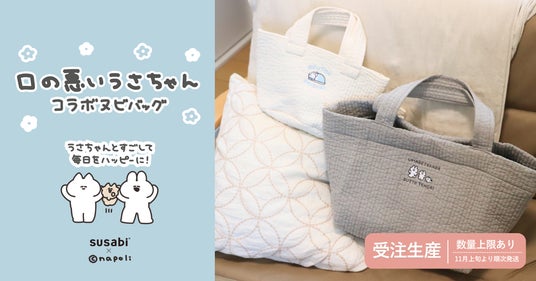 「心豊かなくらしを」提供する総合ライフスタイルブランドsusabi(本社:東京都新宿区、代表取締役社長:荒井 俊亮)は、2025年9月19日(金)11:00~9月29日(月)10:00に限り、SNSで人気のキャラクター『口の悪いうさちゃん』とコラボレーションした限定デザインのヌビバッグを、susabi公式オンラインショップにて受注販売いたします。発売を記念し、susabiベビーキッズ公式Instagramにて、先着20名様が使用できる500円OFFクーポンをプレゼントします。