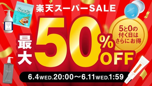 最大50%OFFの超お得な楽天スーパーSALEが6/4(火) 20:00~6/11(火) 1:59まで開催!