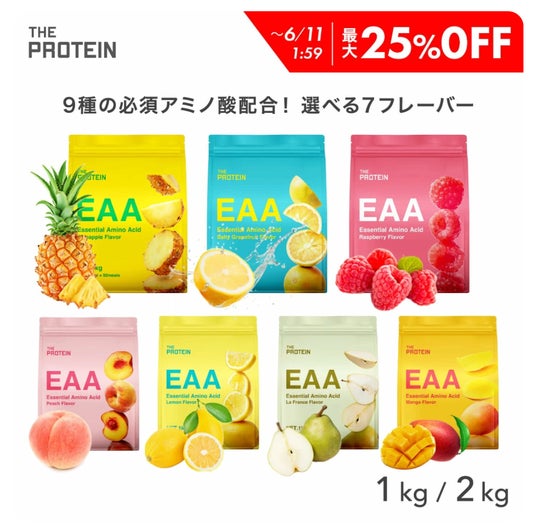 9種類の必須ビタミン+5種類のサポート成分配合のザプロEAA。圧倒的な飲みやすさが特徴!筋トレ時のコンディションサポートにおすすめです。7フレーバー展開で、お客様からの生の声を反映し、より飲みやすいフレーバーに仕上がりました。