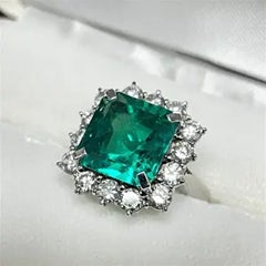 エメラルド E(5.68ct メレダイヤ MD(1.80ct PT900 リングルビーやサファイアと並ぶ3大貴石のエメラルドです。中央のエメラルドもさることながら囲むようにセッティングされたメレダイヤも美しく輝いています。