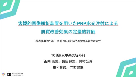 日本全国に103院(2025年11月現在)を展開する美容クリニック TCB東京中央美容外科(理事長:寺西 宏王、以下「TCB」)は、2025年10月16日(木)~17日(金)に鹿児島市にて開催された「第34回日本形成外科学会基礎学術集会」において、TCB理事長の寺西宏王ら当院所属の医師が登壇し、研究成果を発表したことをお知らせいたします。