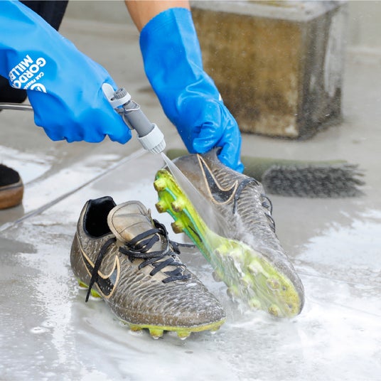 汚れが強いときには中性洗剤を希釈して使用可能です。靴洗いやベランダの床掃除など、通常の水洗いでは落ちにくい汚れにも対応します。