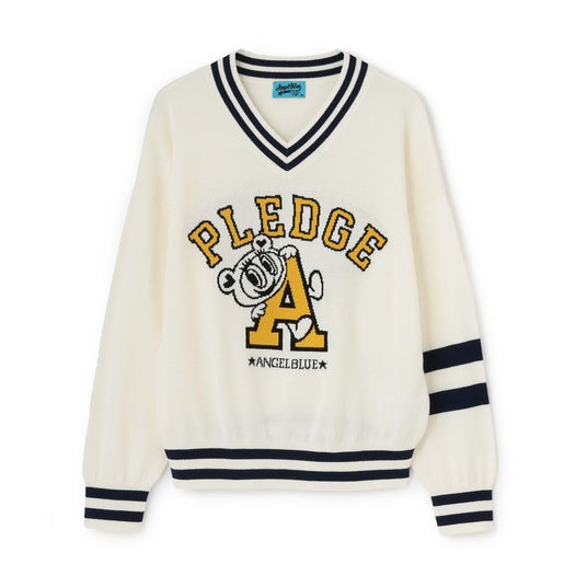 ナカムラ チルデンセータースクールガール気分を盛り上げるカレッジロゴ入りのチルデンセーター。