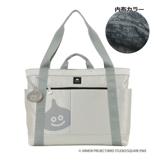 軽くて丈夫なポリエステル素材を使用したトートバッグ。ゆったりサイズでA4書類やノートPCもすっきり収納出来ます。可愛いスライムプリントにファスナー部分のスライムモチーフ引手もファンにはたまらないデザインです。希望小売価格:各9,900円(税込)