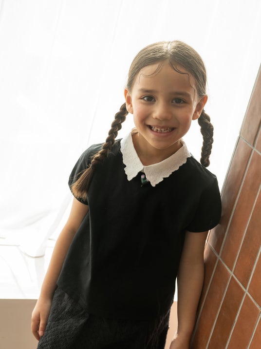 AMICA・kids定番の2way リボントップスをカラー別注しました。セーラーのような印象の襟は、2wayで楽しんでいただける仕様になっています。フリルを施した襟は、結ぶとミニリボンにでき1枚で表情を変えられるアイテム。袖はフル丈~7分袖と成長しても長くご愛用いただけます。素材もオールシーズン着用できるようソフト仕上げのコットンジャージー素材を使用。着心地が大事な子どもたちのため、伸縮性に富んだ素材となっています。職人が一枚一枚丁寧に縫製した愛に溢れた1品は華やかな印象に仕上がりました。