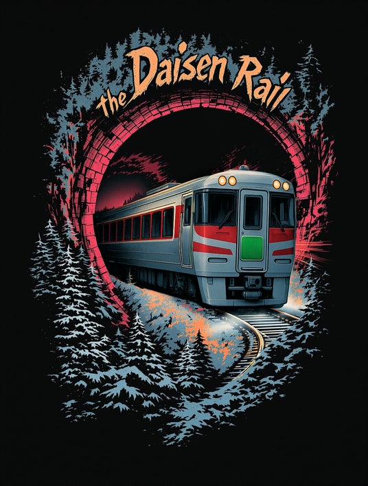 中国地方の名峰・大山への特別な旅を彩った臨時特急「大山」。ステンレス製の輝く銀色の車体に、茜色を車体側面の帯や前面のアクセントとして採用した外観デザインが特徴です。山陰の夕暮れ時の空を思わせる美しい茜色のラインが、時を経て味わいを増したシルバーボディに映える、どこか懐かしさを感じさせる配色です。ノスタルジックで温かみのあるデザインが、カジュアルなスタイルに心地よいアクセントを添えます。