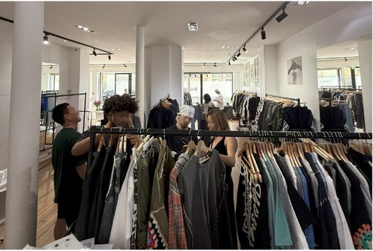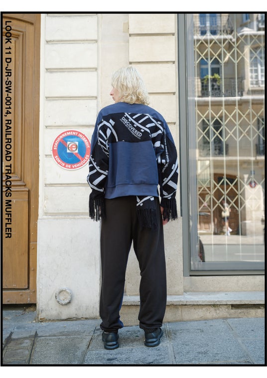 初めての連携となる第一弾商品では、「すべての路線には物語があり、それは今、あなたの上を走る~都市の風景を纏う~」をコンセプトに、JR西日本エリアの路線のビジュアルを元にAIがデザインしたパーカーや、線路をイメージしたスウェット等を制作。日本での販売に先駆け、2025年6月にパリで開催されたパリ・ファッションウィークへのDISCOVERED出展に合わせて、パリ市内でテスト出品をしました。期間中は多くの方がブースに立ち寄り、商品に関する説明に対して熱心に耳を傾けていました。鉄道が好きな方はもちろん、鉄道に興味がない方に対してもファッション要素の一部として受け入れていただけるデザインに。「鉄道を纏う」という新しいアイテムを提案します。